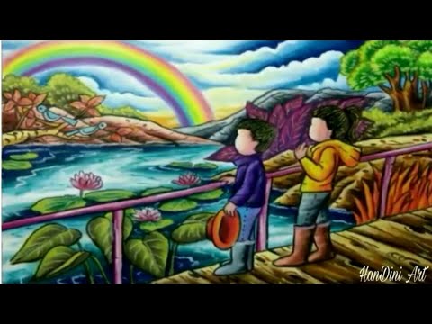 Mewarnai Gradasi Dengan Crayon Oilpastel Pemandangan Indah