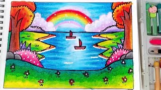 Cara Menggambar Pemandangan Alam Pelangi Youtube