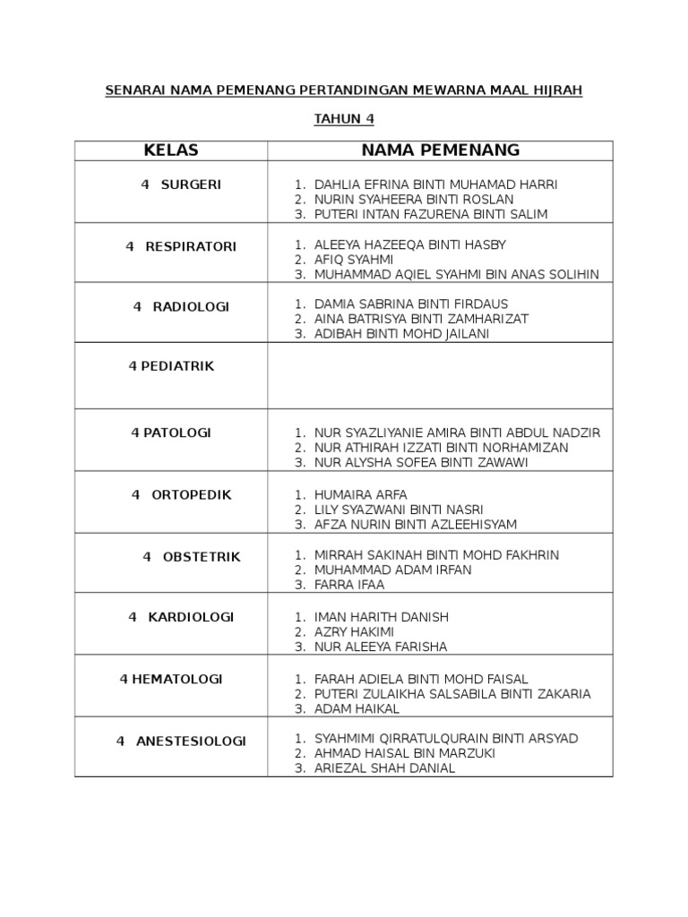 Senarai Nama Pemenang Pertandingan Mewarna Awal Muharam Thn4