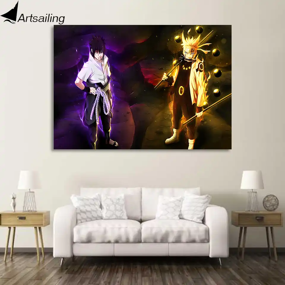 1 Piece Kanvas Lukisan Naruto Dan Sasuke Hd Anime Poster Dan