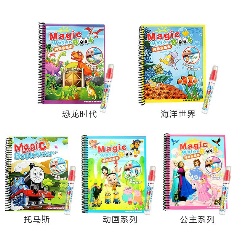 Sihir Air Gambar Buku Kain Dinosaur Kartun Hewan Doodle Lukisan